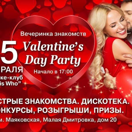 Приглашаем Вас на романтическую вечеринку знакомств "VALENTIN'S DAY PARTY". Профессиональный ведущий наполнит вечер позитивом и не даст заскучать! Вас ждут новые романтические знакомства, общение с интересными людьми, музыкальные флешмобы, мультимедийные юмористические интерактивы, в которых каждый сможет проявить свою смекалку и эрудицию или просто от души посмеяться. Самые активные участники получат памятные призы!